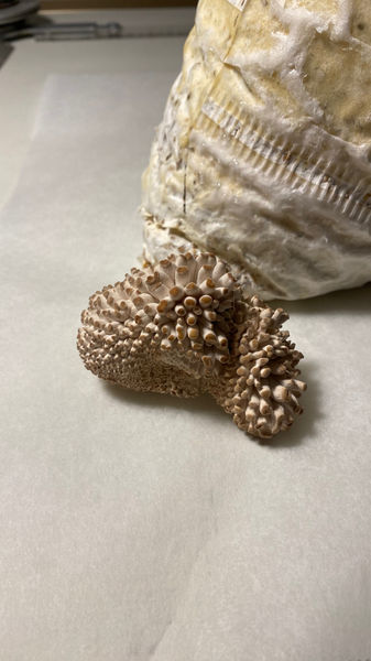 Mycelium blokk produsert i en pose, består primært av østerssopp gyte rester