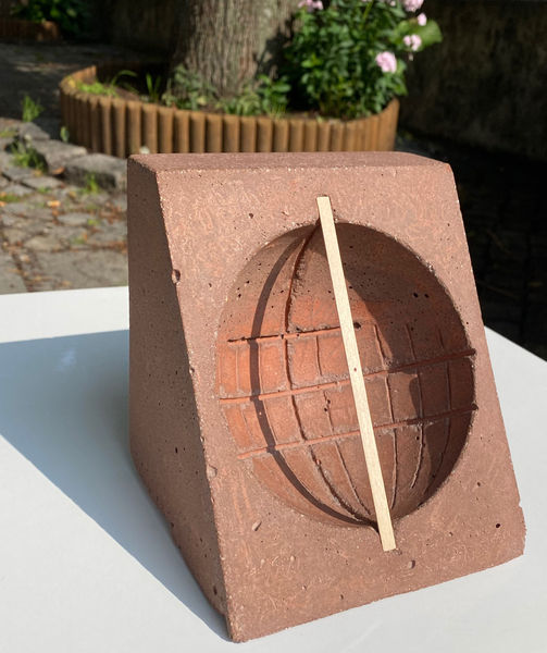 Betong med jernoksid pigmenter og peker av ubehandlet furu